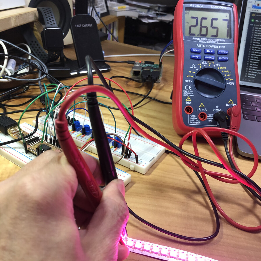 Measure voltage, current, resister and frequency(Hz) by the number of LEDs on NeoPixel