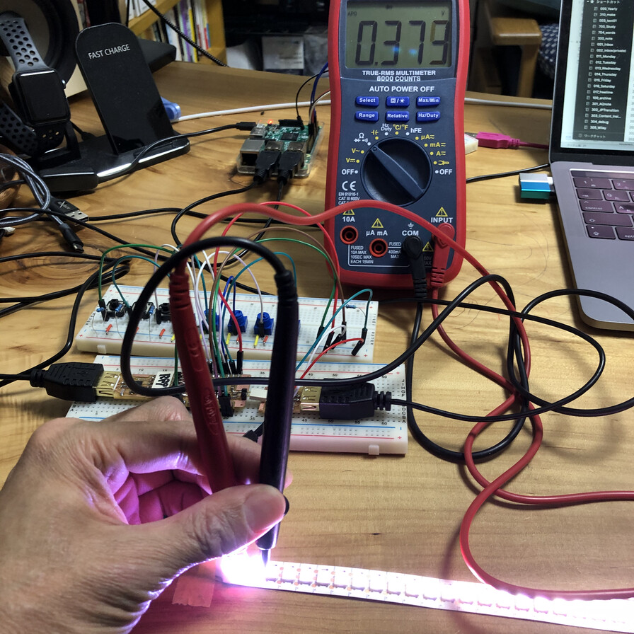 After I come back to lab, I could check the current by shunt resister circuit. As NeoPixel LED resister value depends on the number of LEDs and the connection, I put a resister as a serial circuit bridging 5V and GND in NeoPixel.