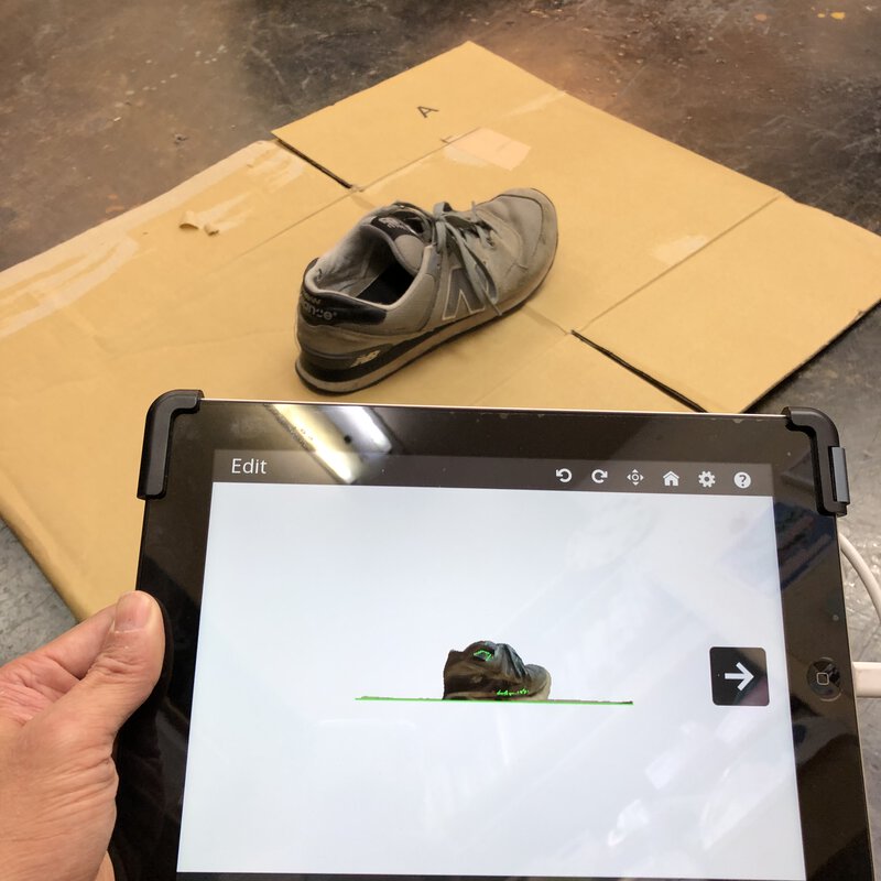 I tried to scan my shoes (gray color, New Balance M368) using iSense installed in iPad and attached high resolution camera. It's difficult to scan entire object precisely. I edited some wired scan result (deleted unnecessarily added part)