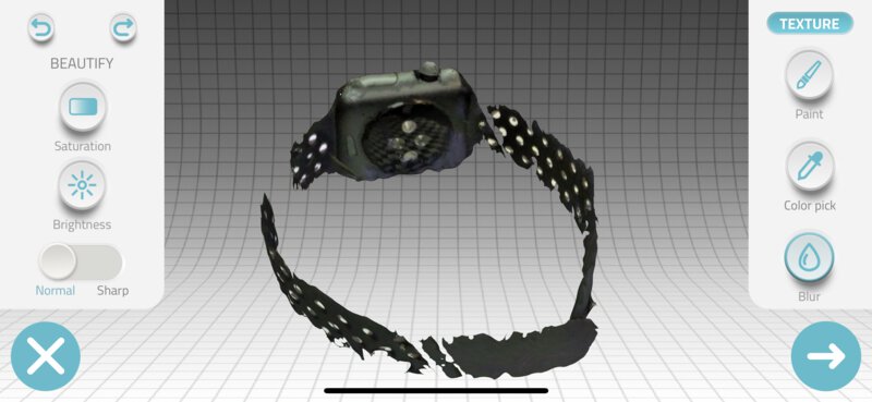 Backside of the watch is captured clearly. However, the part of band was not be captured well. This looks to be because a black band of my watch has bunch of holes. This hole would make Qlone confuse about recognition of position.