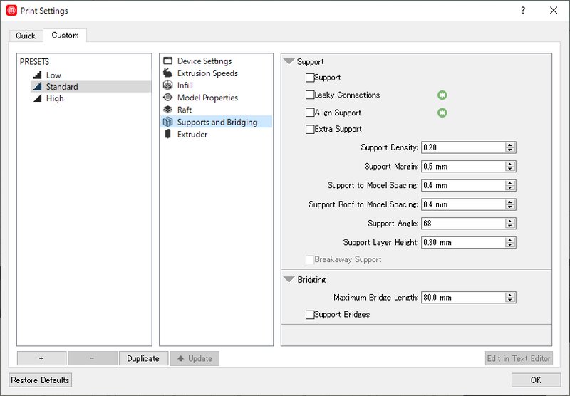 1) Turn off the support of slicer software of UP Plus 2. The other parameters are in default preset of UP Plus 2.