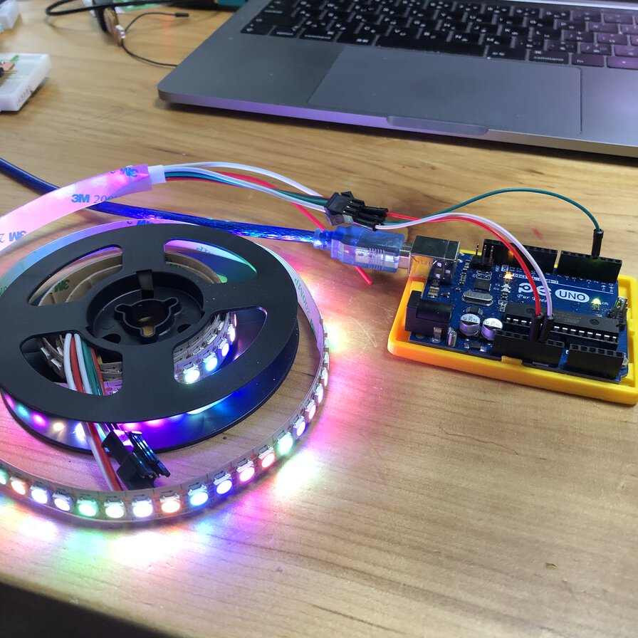 I referred information in WS2812B datasheet and a blog(in Japanese) and tried to experiment using "FastLED" library.