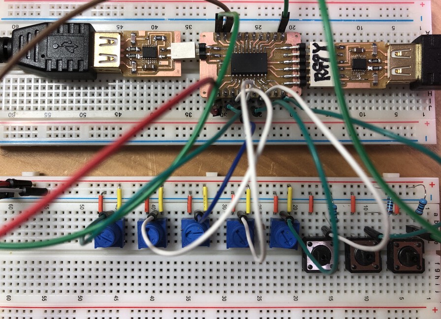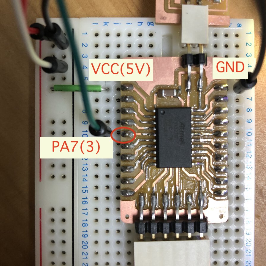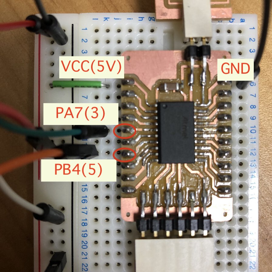 Before designing board pattern, I experimented by original input/output board using original Attiny3216 breakout board.