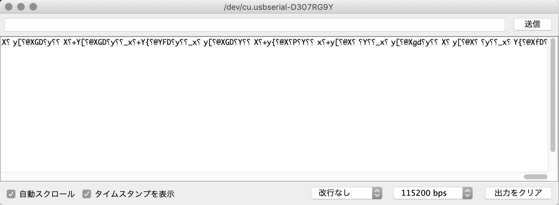 However, charactors in serial monitor of Arduino IDE is garbled and there is no line feed.