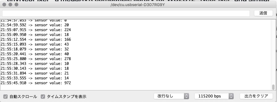 Also, for writing program to ATtiny3216 breakout board and serial communication monitoring with it, I changed my host computer from macbook pro to Raspberry Pi. This is because it looks that the behavior of USB type C connector or the adapter of USB type C-A is not stable. After I changed to Raspberry Pi, failure of pyupdi works very fine :) About setup, see page of Raspberry Pi Tips - Setup pyupdi