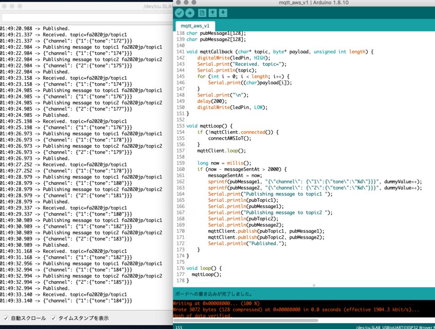 | publish topic name (*pubTopic) | fa2020jp/topic* (ex. fa2020jp/topic1, fa2020jp/topic2) |