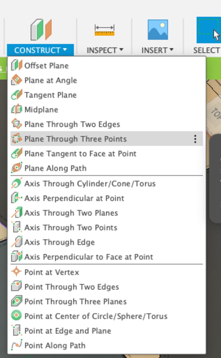 Construct > plane through three points