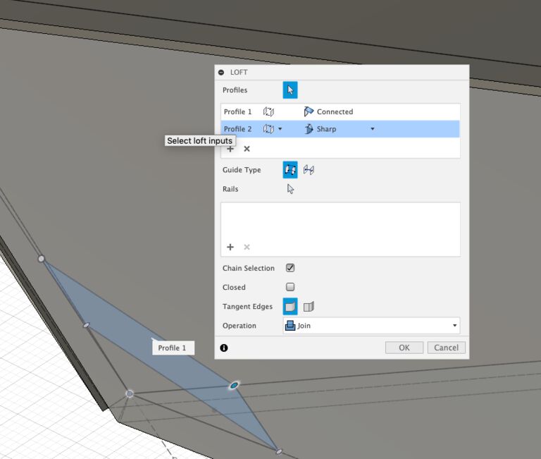 Loft - from constructed plane to the top edge.
