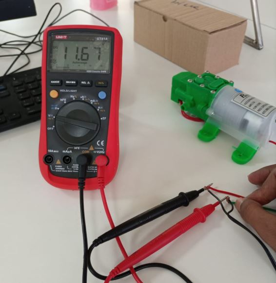 First, we have select the Dc Motor that Working on the 12.0V voltage, After that we have decide that we use the Digital Multimeter to measure the Voltage and Current and used the Power Calculation Formula to Caculate the Power,The DC water Pump Motor Having these Properties.
