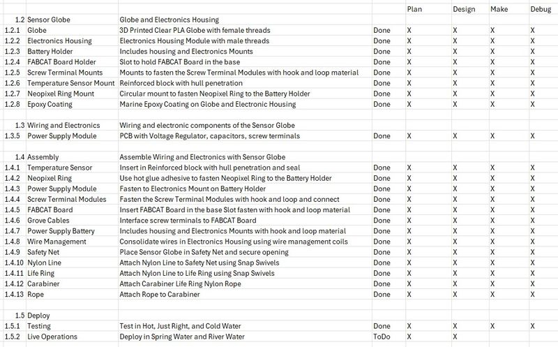 This is the WBS status going into Week 15. This is the week for Test and Control and that has been completed. I will focus on the Wildcard Week assignment this week.