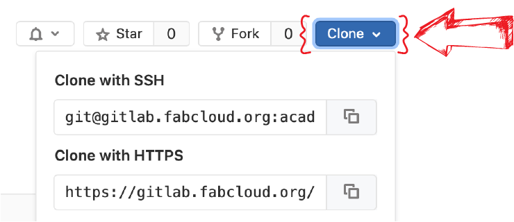 You will start off by logging in to your GitLab with your Fab Academy Credentials and navigate to your repository and you will wee a blue button that says, “Clone” in the upper left. When you click it you will get a drop down like the one pictured below. You will want to copy the URL for the option that says, “Clone with SSH.”