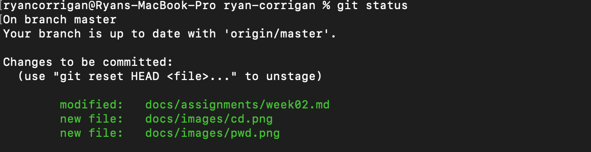 After that I will always check my git status again to make sure what I gust added has turned green.