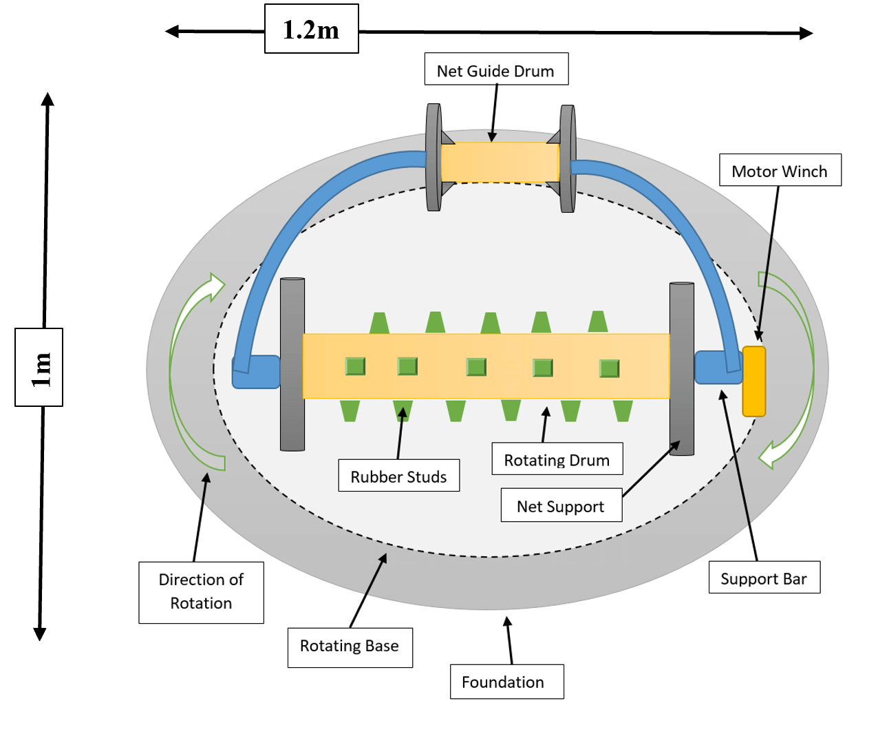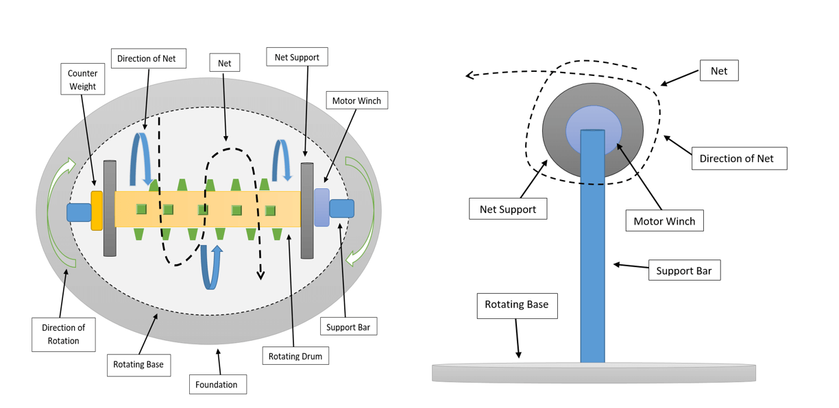 The proposed solution for the project will feature a electric motor unit that would be able retrieve the fishing net from the seafloor and can be easily mounted on light commercial fishing boats (16 ft to 60ft). The proposed solution can be easily setup with minimal fixation on the floor board of fishing boats and can also be dismantle easily since it does not feature multiple moving componenets. The motorized winch mechanism on the proposed solution would be able to pull the net in the short amount of time and provide enough toque for steady pull thereby improving the life of net. The following are the 2D models of the proposed solution with dimensions.