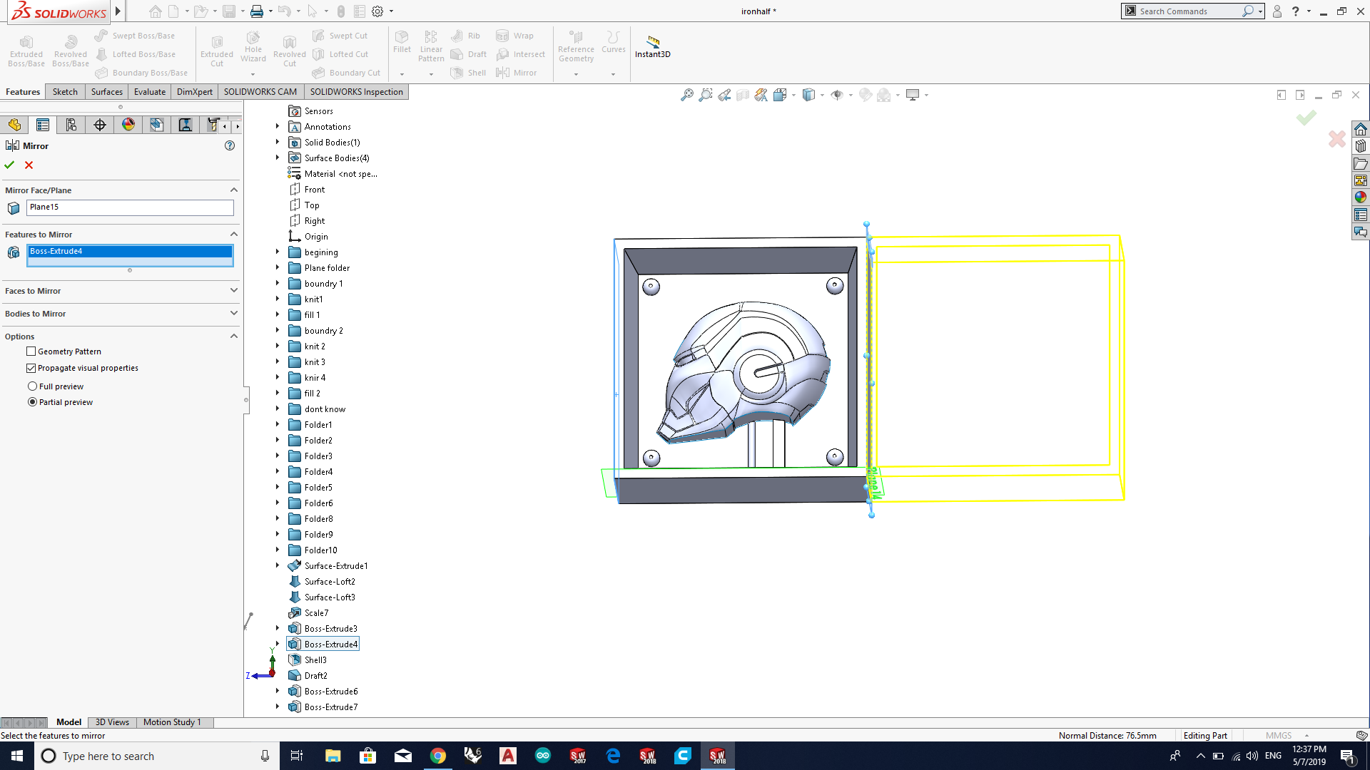 11- I used the mirror feature to create the second half of the mould and set the plane I created in the previous step as the "Mirror Face/Plane".