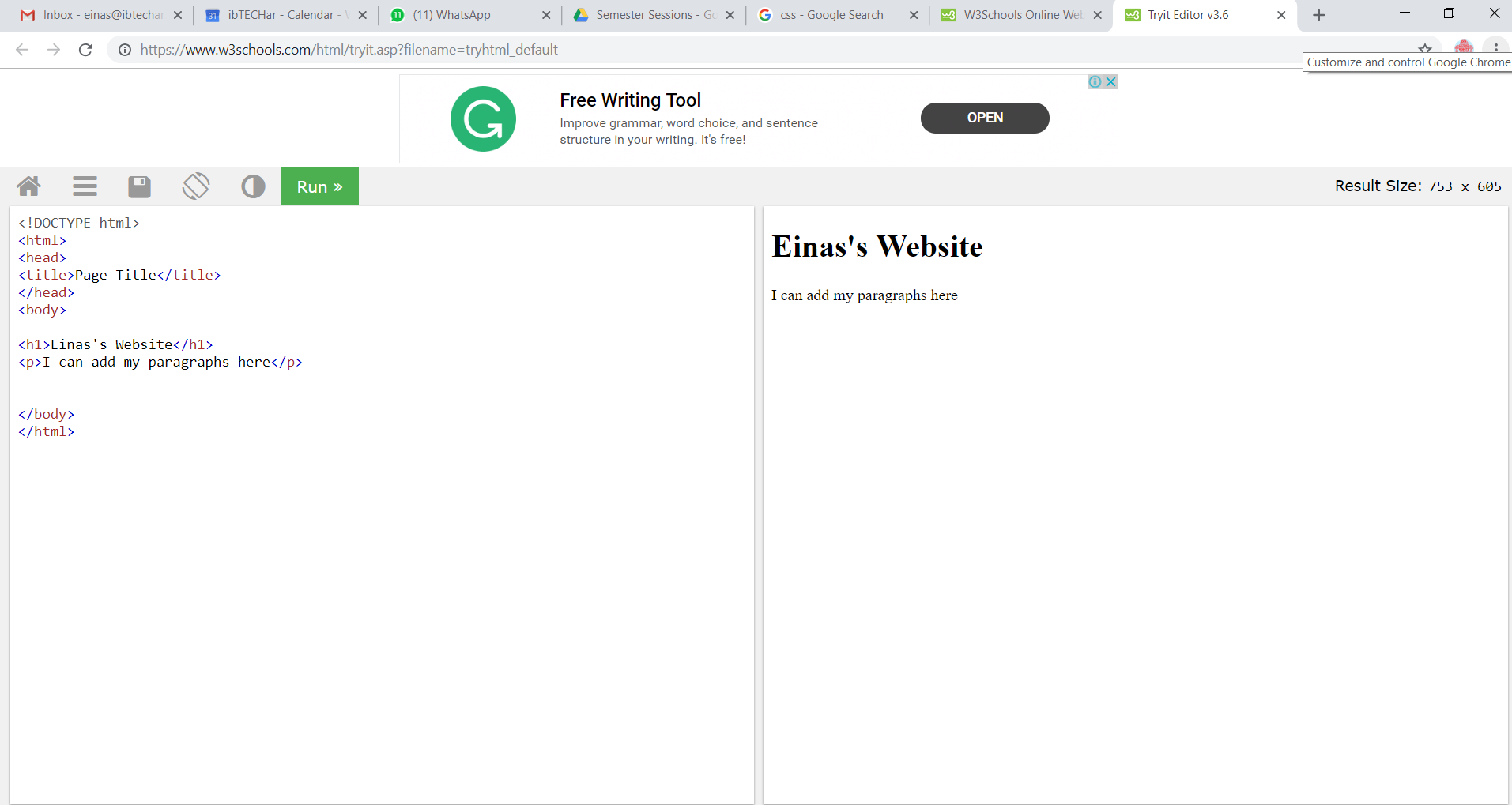 To understand the general format of HTML and adding CSS, I used the website w3schools.com to practice and get familiar with the syntax of HTML