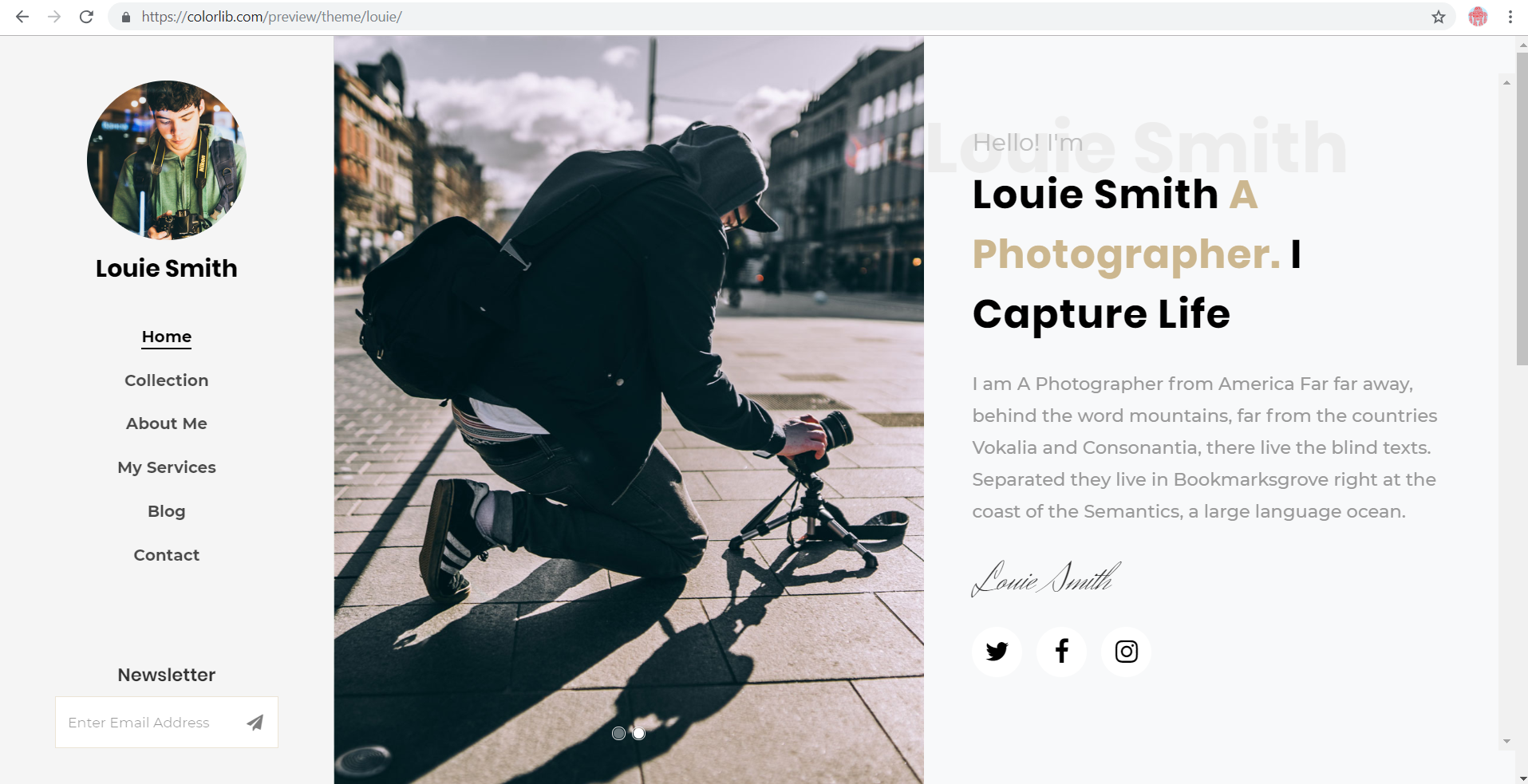 The template I chose (Shown in the pictures below) is a photography template which I felt is neat, simple and live. Therefore, I made sure that the website has all the elements I’m looking for in order to optimize the editing process. Finally, I downloaded this template from here.
