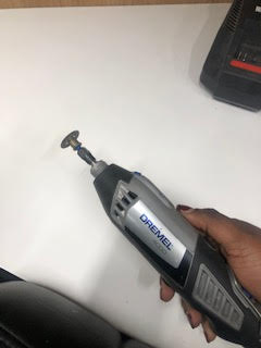Finally, I decided to cut the outline manually because I was running out of time and the machine needs time to be fixed. Thus, I used the Dremel power tool shown below to cut the outline and sand the rough edges.