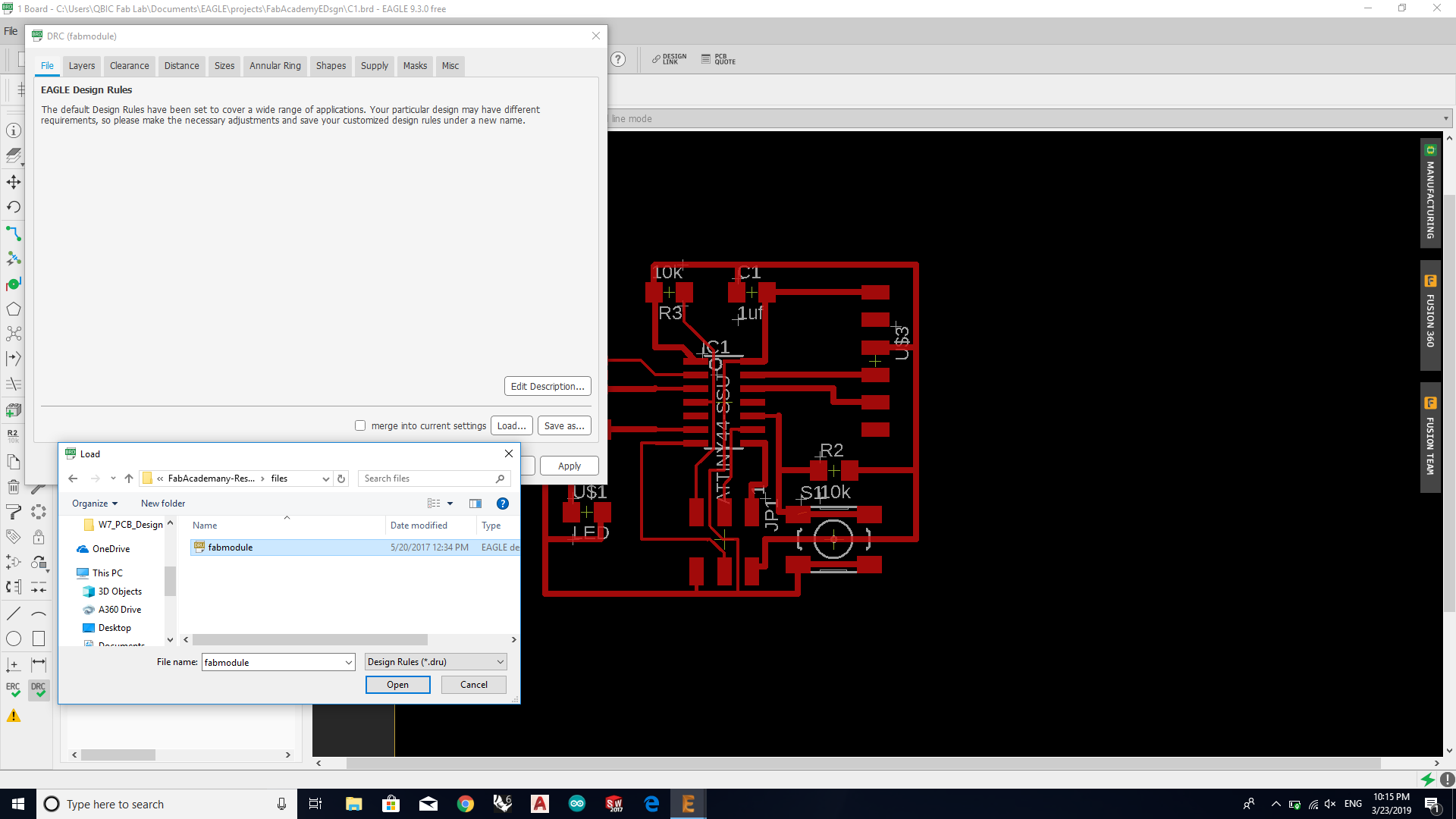 1- Fisrt things first, I downloaded the components library fab.lbr ,which is provided by Fab Academy, to my computer.