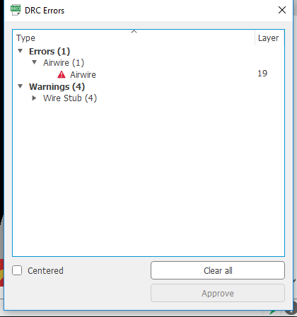 After the checking was completed, a window with some errors and warnings appeared. The errors were related to airwire which means the specified connections needs to be more secure.