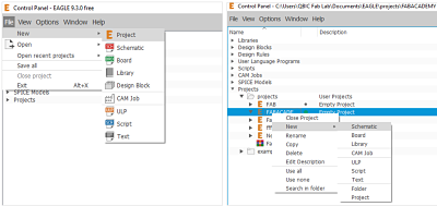 2- I created a new project by going to File in the top toolbar > New > Project > Rename the projec> Right-click the project you created > New > Schematic.