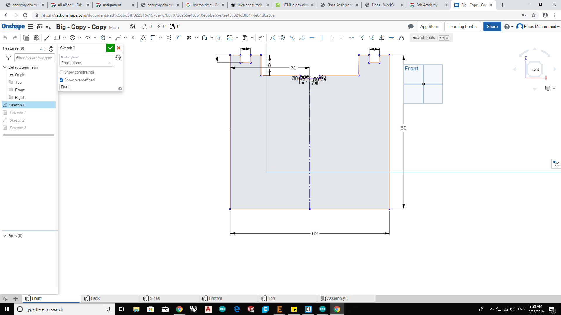 The 3D desiging process was pretty easy and straight forward. However, according to our machine instructor, there are some notes or remarks I had to make sure of.