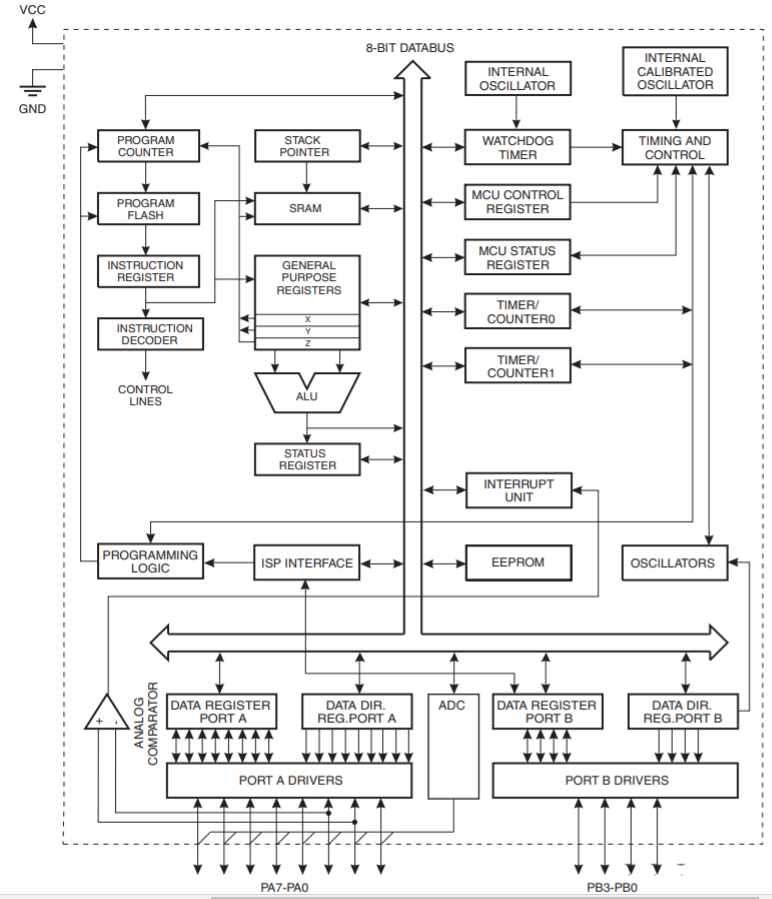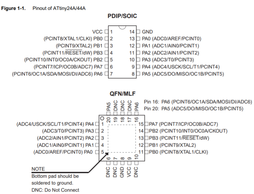 There after going through the ATTiny44 datasheet, here are the main information I gathered: