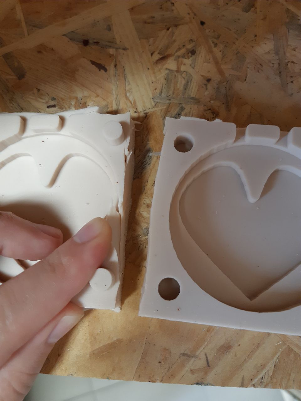 We also used a different, much newer silicone. When I took out the first mould, however, I broke the wax wall so I used some clap and a piece of plywood. Unfortunately, however, I didn't leave enough space between positive and negative and cutting with the cutter (which is not easy since my mold is very high) I accidentally cut too much.
