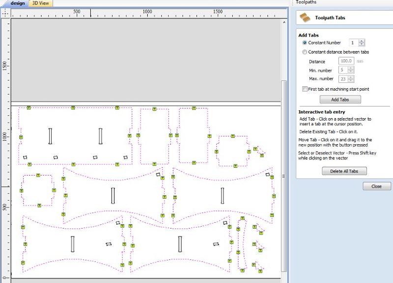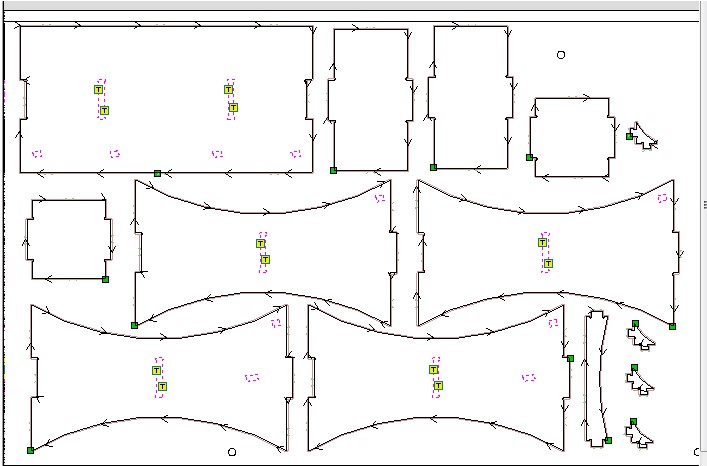 For the internal cut I followed the same procedure by selecting the internal parts, creating the tabs and doing an inside/left cut on the Machine Vectors settings.