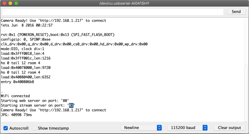 When connecting Wi-Fi, put the Wi-Fi name and password around you and set it up. And after upload, you can see the address through Wi-Fi connection on the serial monitor.