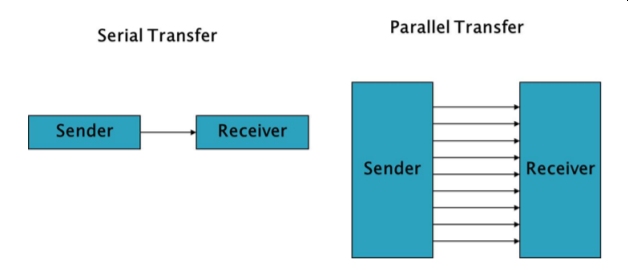 Data communications can be classified as Parallel and Serial as shown in the image below.