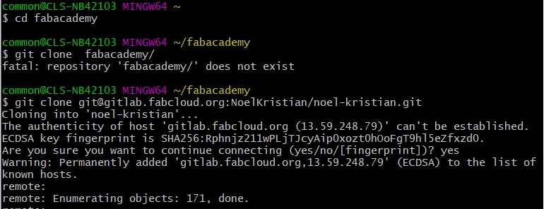 β’ I installed gitbash in my windows PC and follow the tutorial steps in the fab academy site.