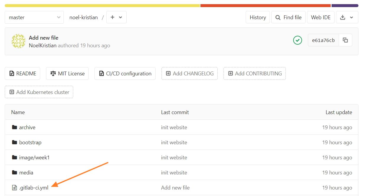 β’ To see the static website on gitlab, first the .gitlab-ci.yml file must created by: