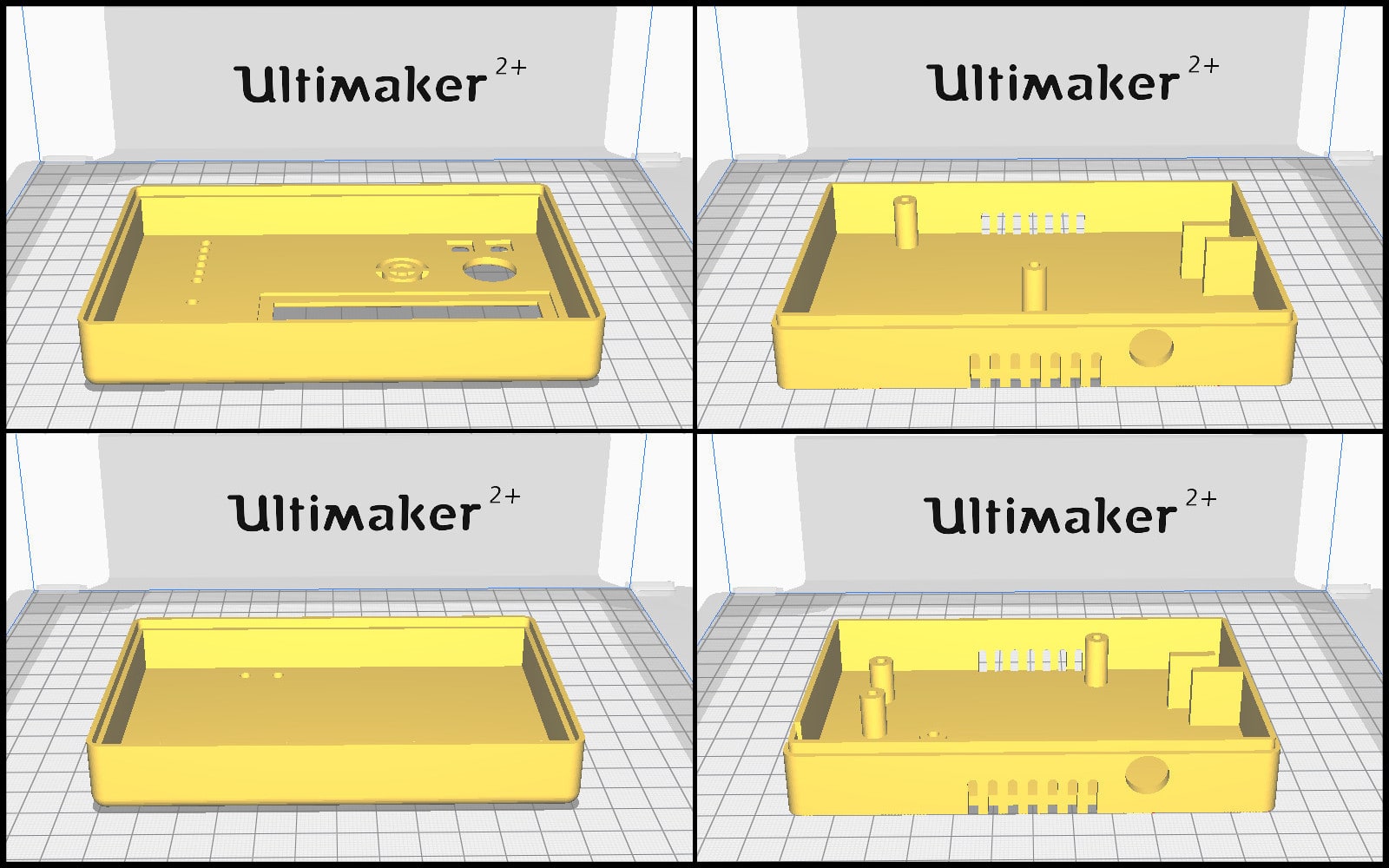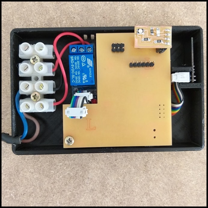 For packaging, I made two 3D models and used 3D printing. Each case has a base and a cover. The base is where the board and other components are fixed. The covers are designed to show visual messages and enable controls. Parts were printed such that support needed is minimal.