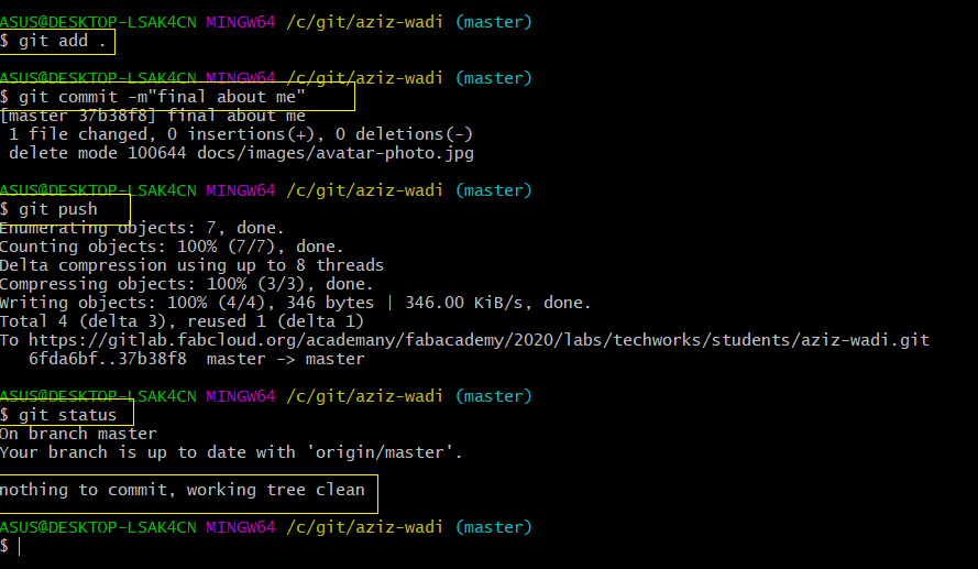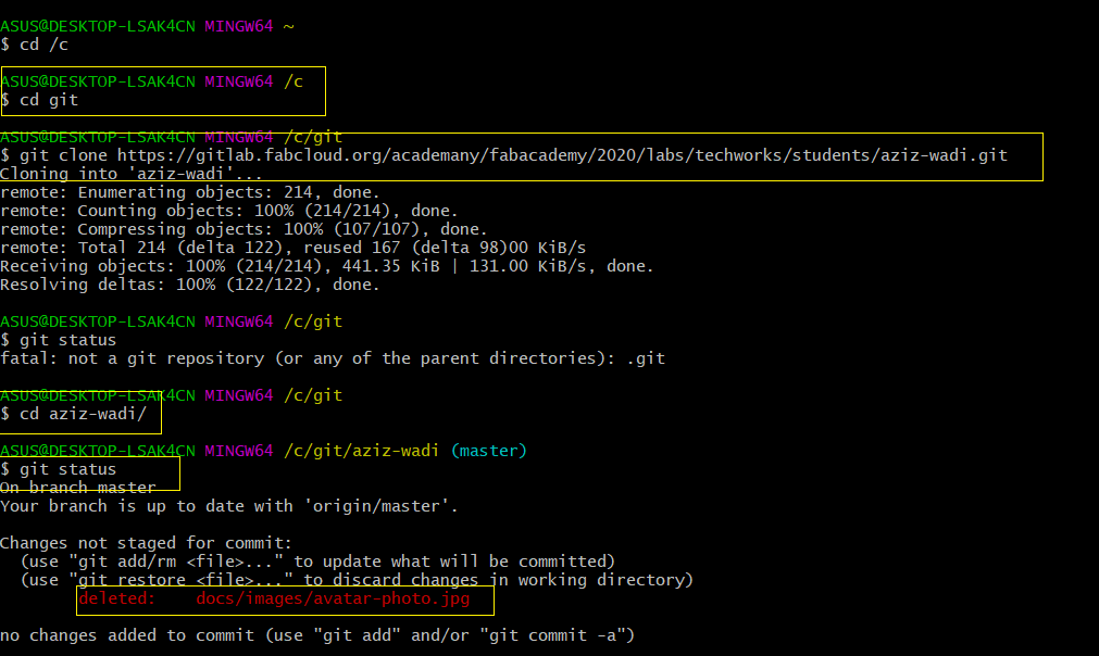 Step4: In git command I used git clone copied URL to clone my repository with the name as used in the cloud, which is “aziz-wadi”.