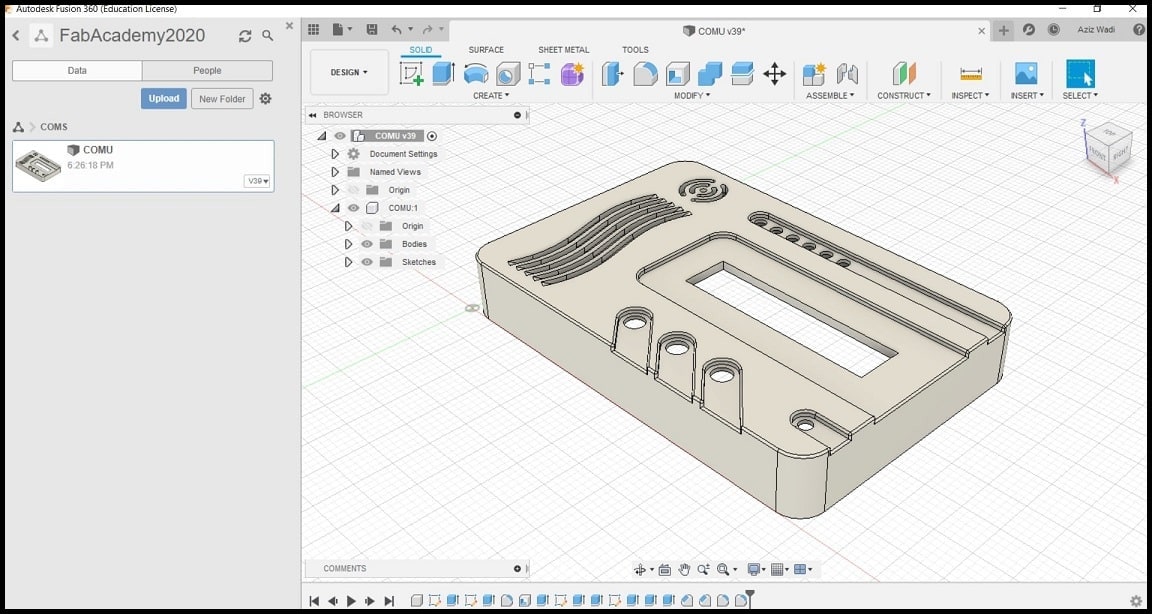 I used Fusion 360 to design the upper case of the COMU (check my final project).