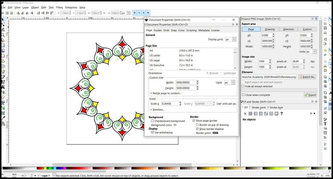 “Inkscape is professional quality vector graphics software”. I worked on creating a simple Mandala where I used many tools and techniques in Inkscape.
