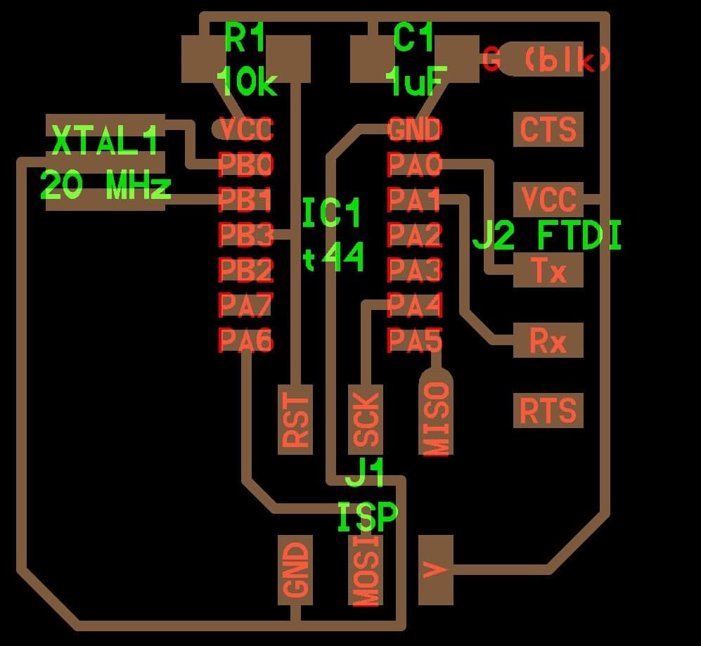 Eagle echo hello-world ATtiny44 board interiors rml file