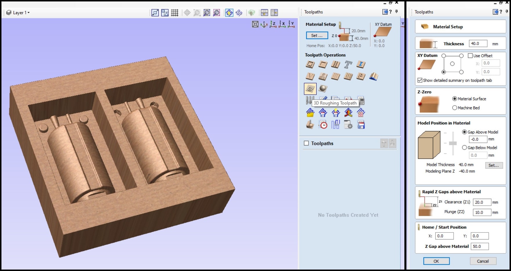 Step 2: Click on “3D Roughing Toolpath” and fill for material setup. Click Ok.