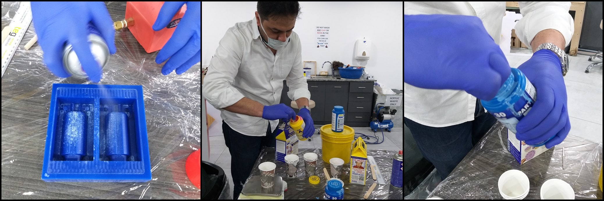 First I applied release agent to the wax mold and stirred thoroughly the content of A and B material containers before mixing.