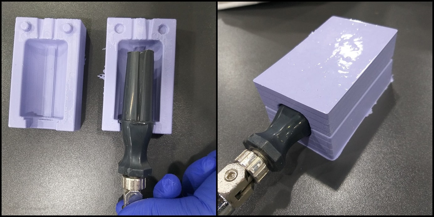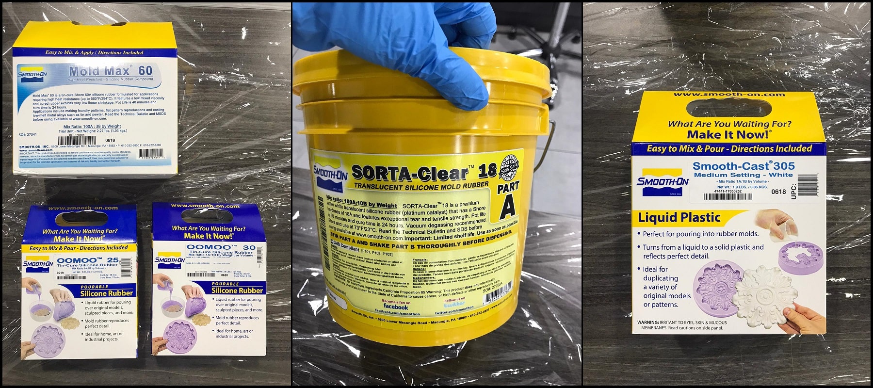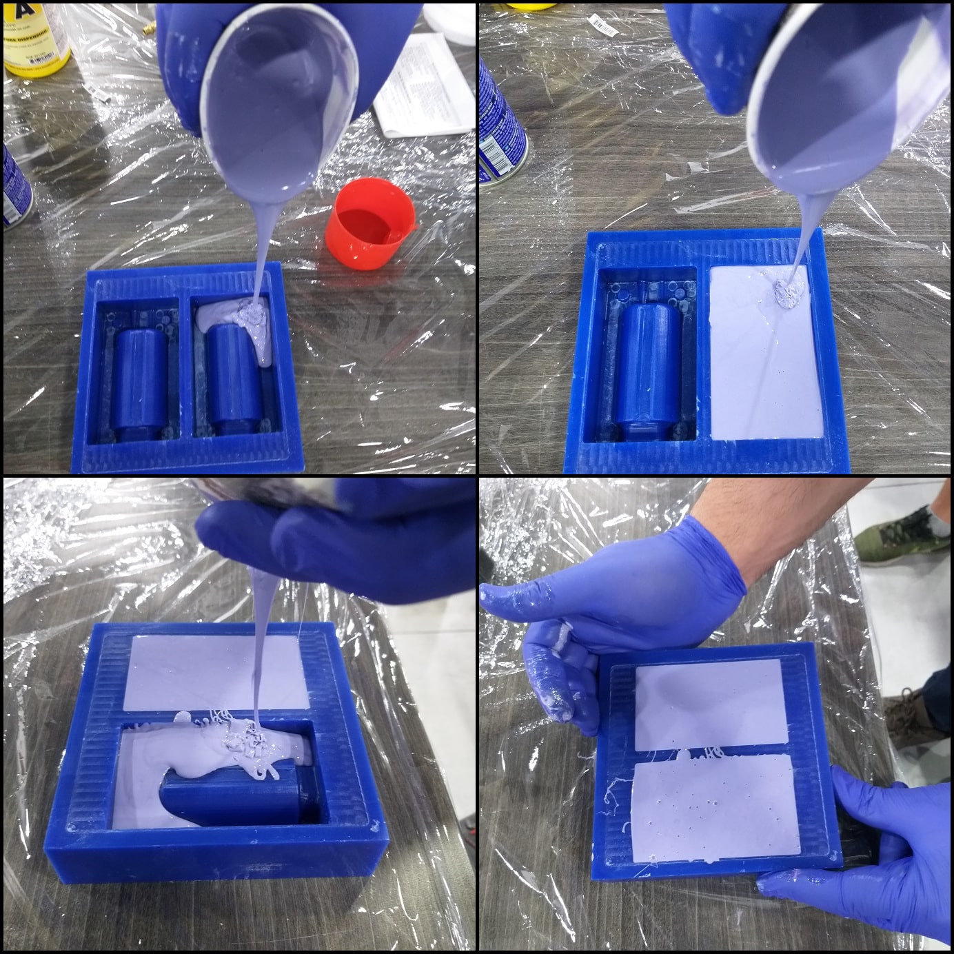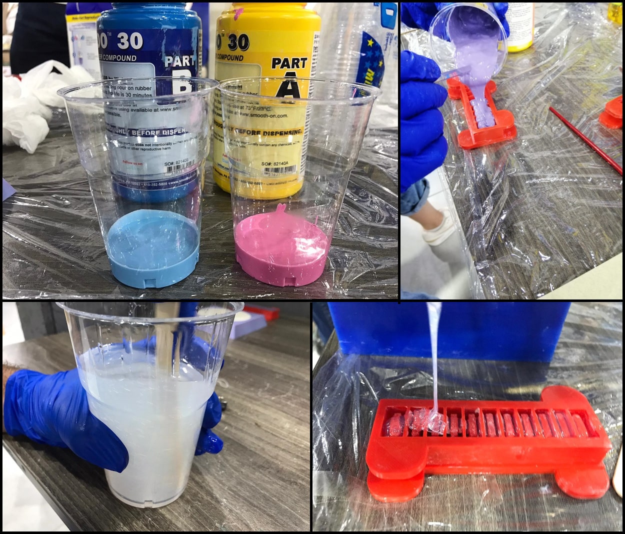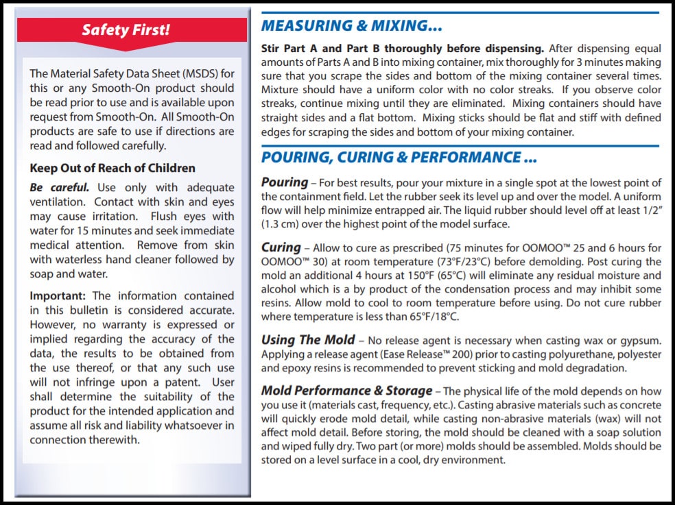 We made test casts using OOMOO™ 30 and SORTA-Clear™ 18 silicone rubbers. We followed the mixing guides in technical datasheets for both materials.