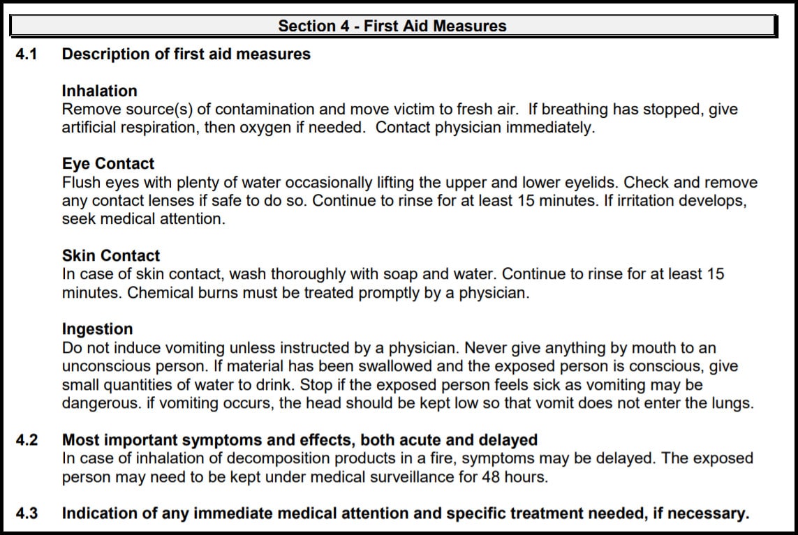 And also, the following first aid measures are listed in the safety datasheet for the same material.