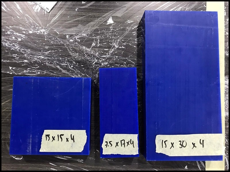 In the lab we have 3 sizes of machinable wax (dimensions in cm). This will be used to mill the positive mold of the final product.
