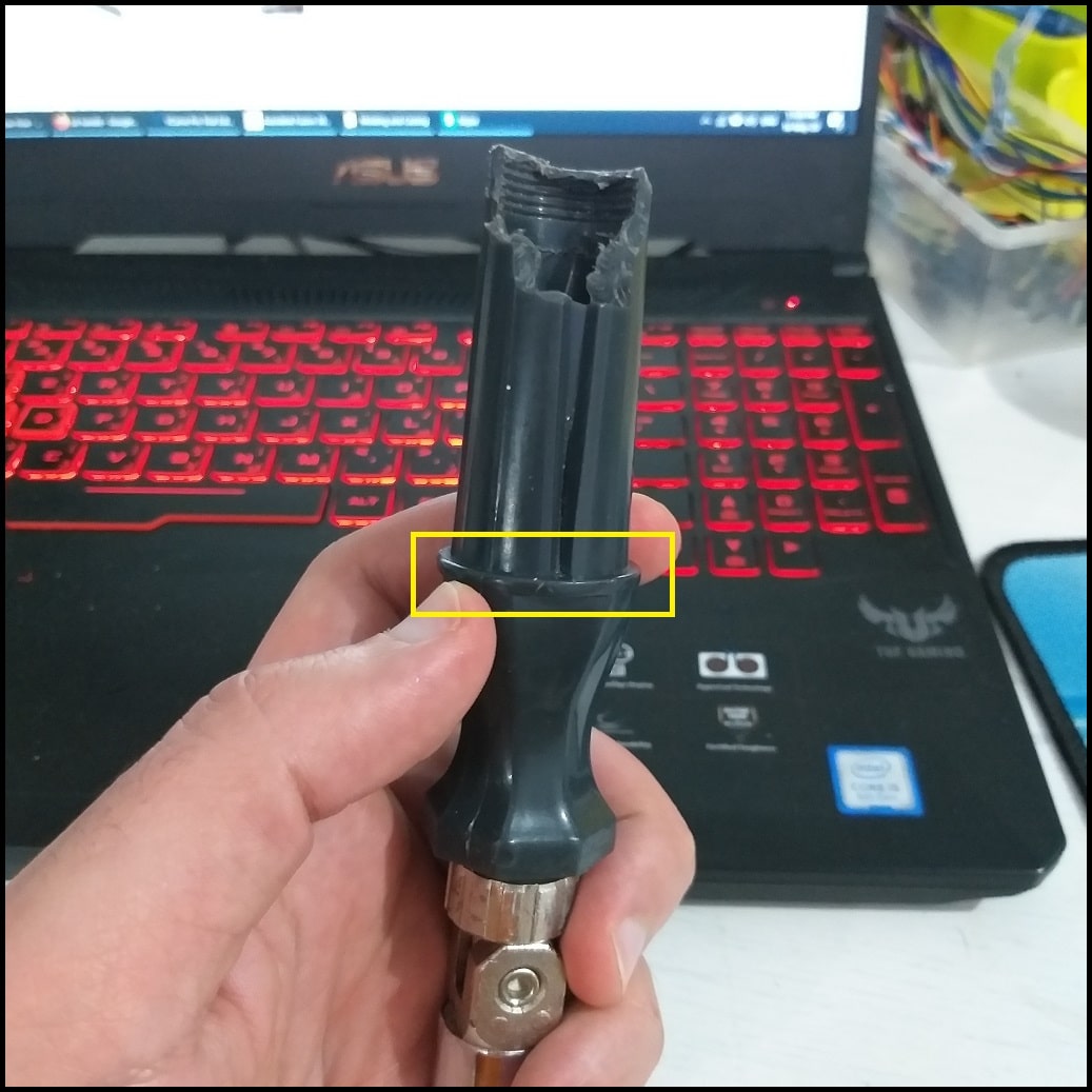 I this part I will make a new grip to replace the broken one in my bit handle screwdriver. The new grip will wrap the part above the edge in the yellow box.