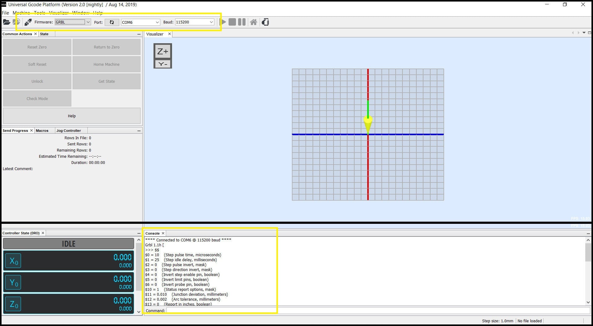 This software will generate g-codes according to job and send those codes to Arduino board (which knows how to read g-codes now!). We will use Universal G-code Sender.