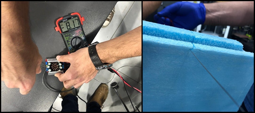 This video shows the hot wire cutting test using +12 VDC.