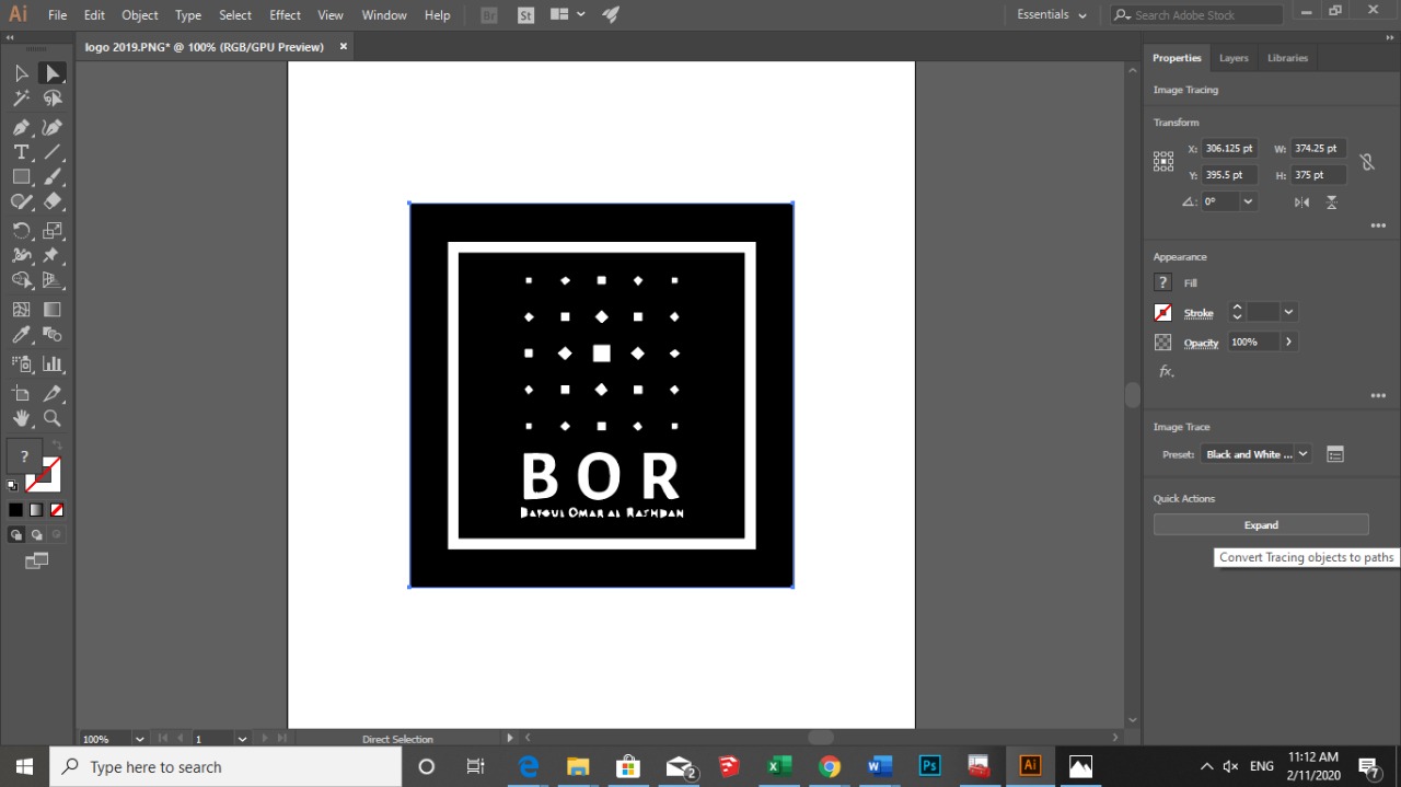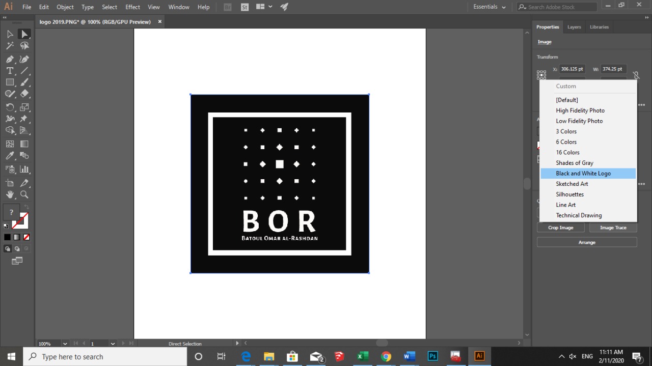Click the Image Trace button in the Control panel or the Properties panel, or select a preset from the Tracing Presets button.