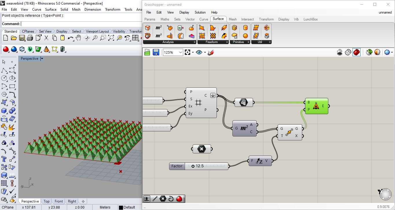step8: surface - area tool (to extract the centroid) then write “move” (to move points up) and write “unit Z” and give it a number slider”