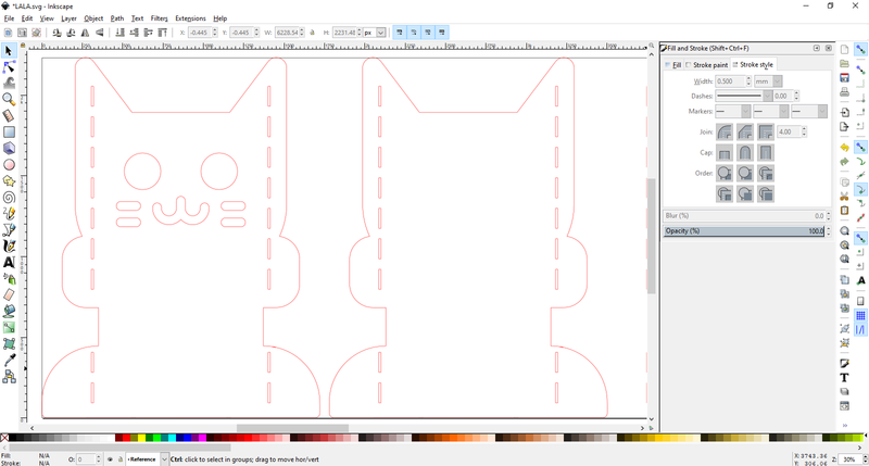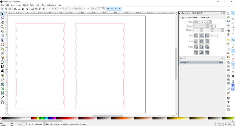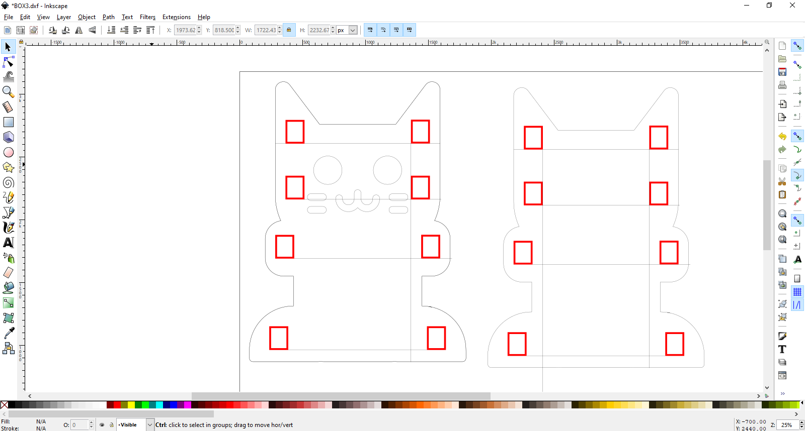 Then i saved the file as DXF in order to open it on “Inkscape” and started editing and started with this :