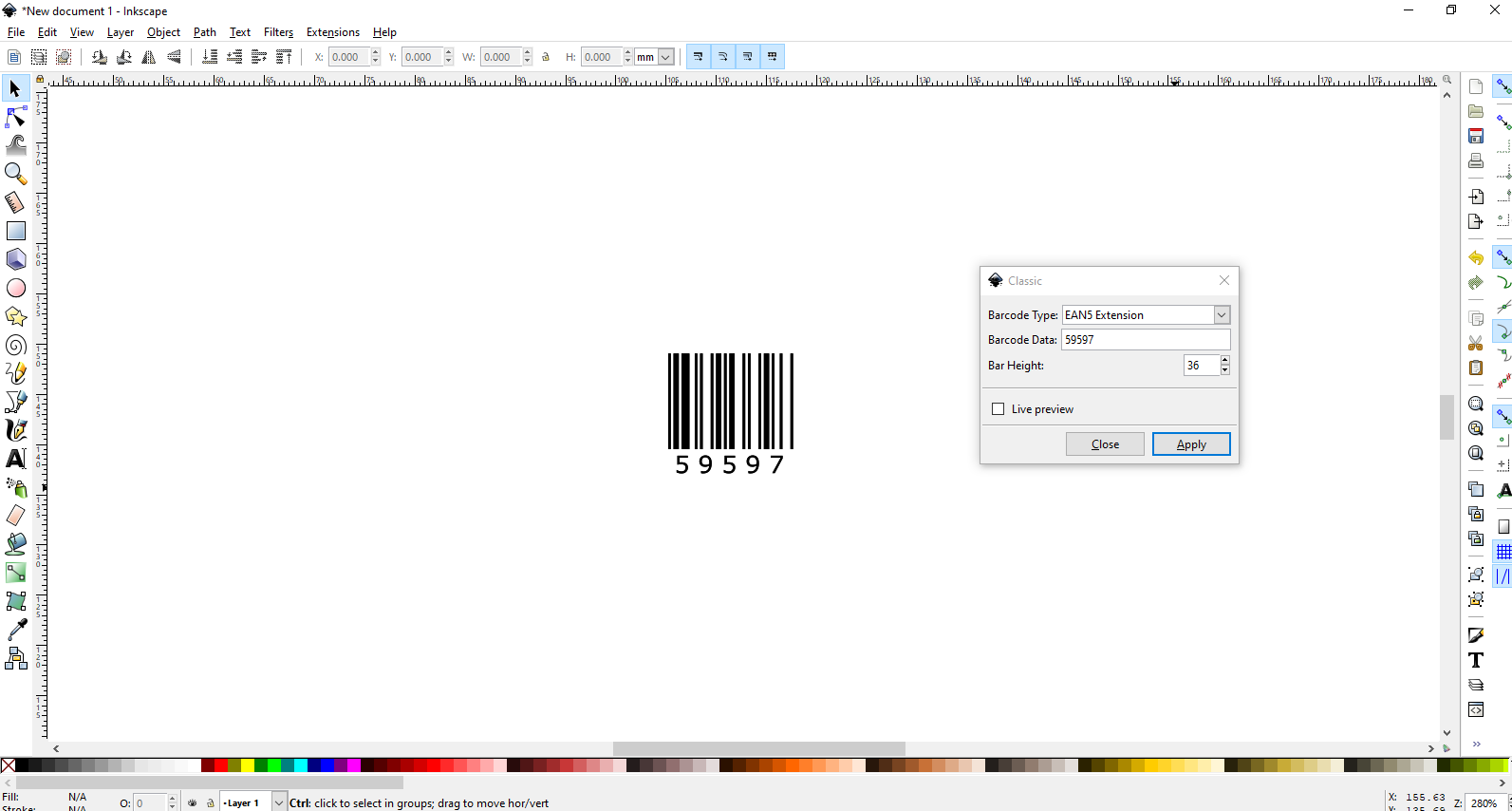 You will notice that there are a lot of tools on the left hand side, anything you click on can be selected and you can change its properties, also resizing your design by using arrows or by changing the numbers on the top screen you can also create Barcodes and QR codes like this :