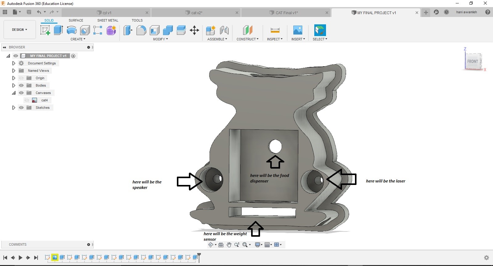 So basically ideas are like a building once you have the first floor ready you start building and building and for that i have realized that the first design was not good as a final product it was just to demonstrate the idea for my final project and i started designing new cases for the final project, finally i have ended up with this design which it took me so long to finish but if you want something to look in a good way you have to put a lot of effort on it, here is what i have come up with as a case for my final project :